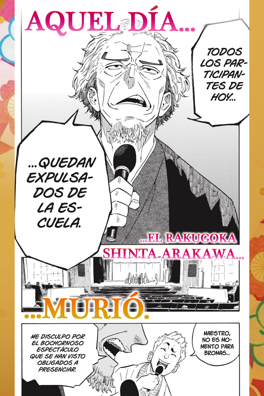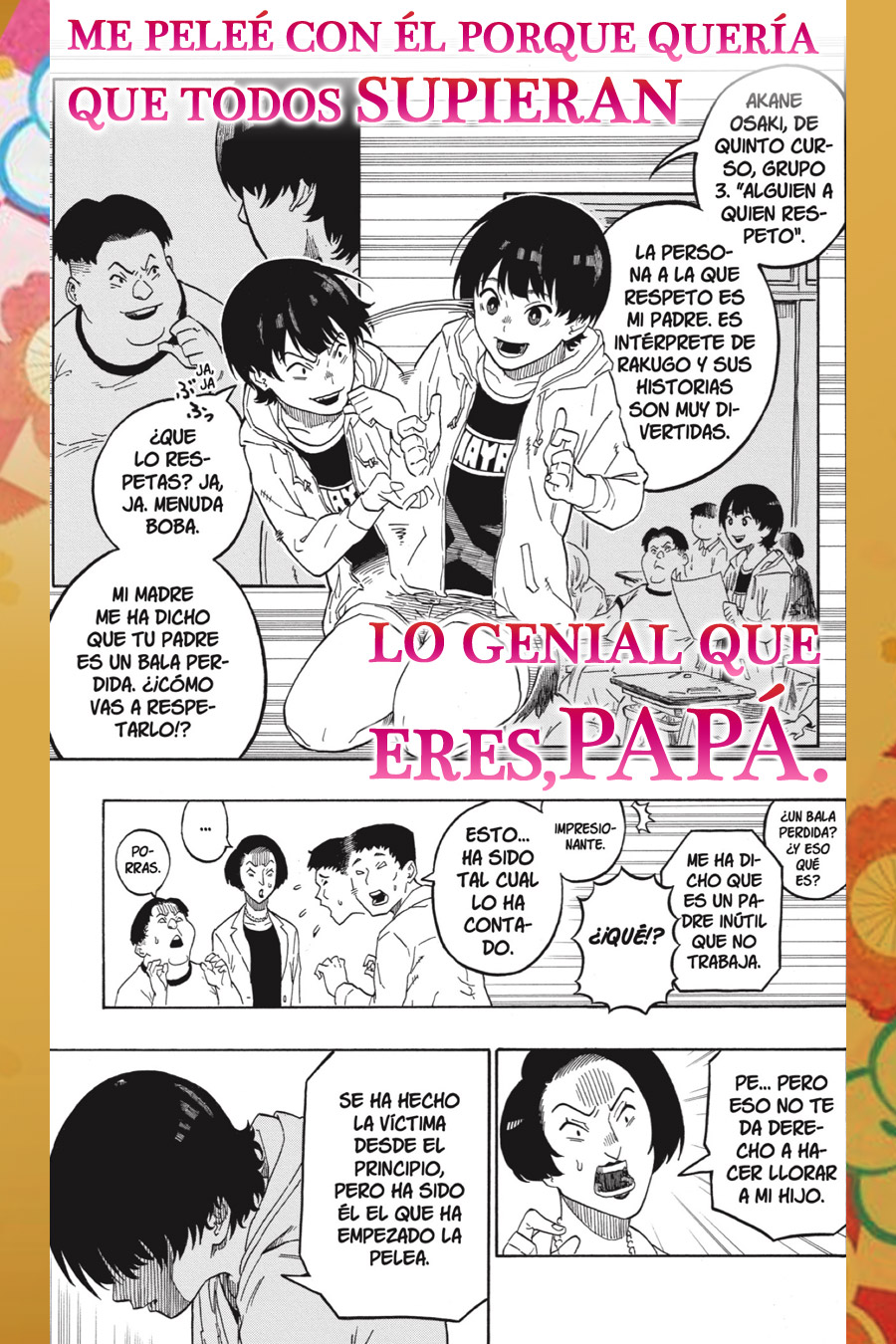 El rakugo es la cumbre de la narración oral, donde todo se expresa únicamente con el cuerpo y las palabras. Shinta Arakawa y su hija Akane han sido cautivados por esta maravillosa forma de entretenimiento clásico. Akane presencia de primera mano cómo su padre lucha por aprobar el examen de promoción a Shin'uchi y decide seguir sus pasos en el mundo del rakugo. ¡¡Comienza esta historia sobre cómo los personajes perfeccionan su arte para la narración oral!!