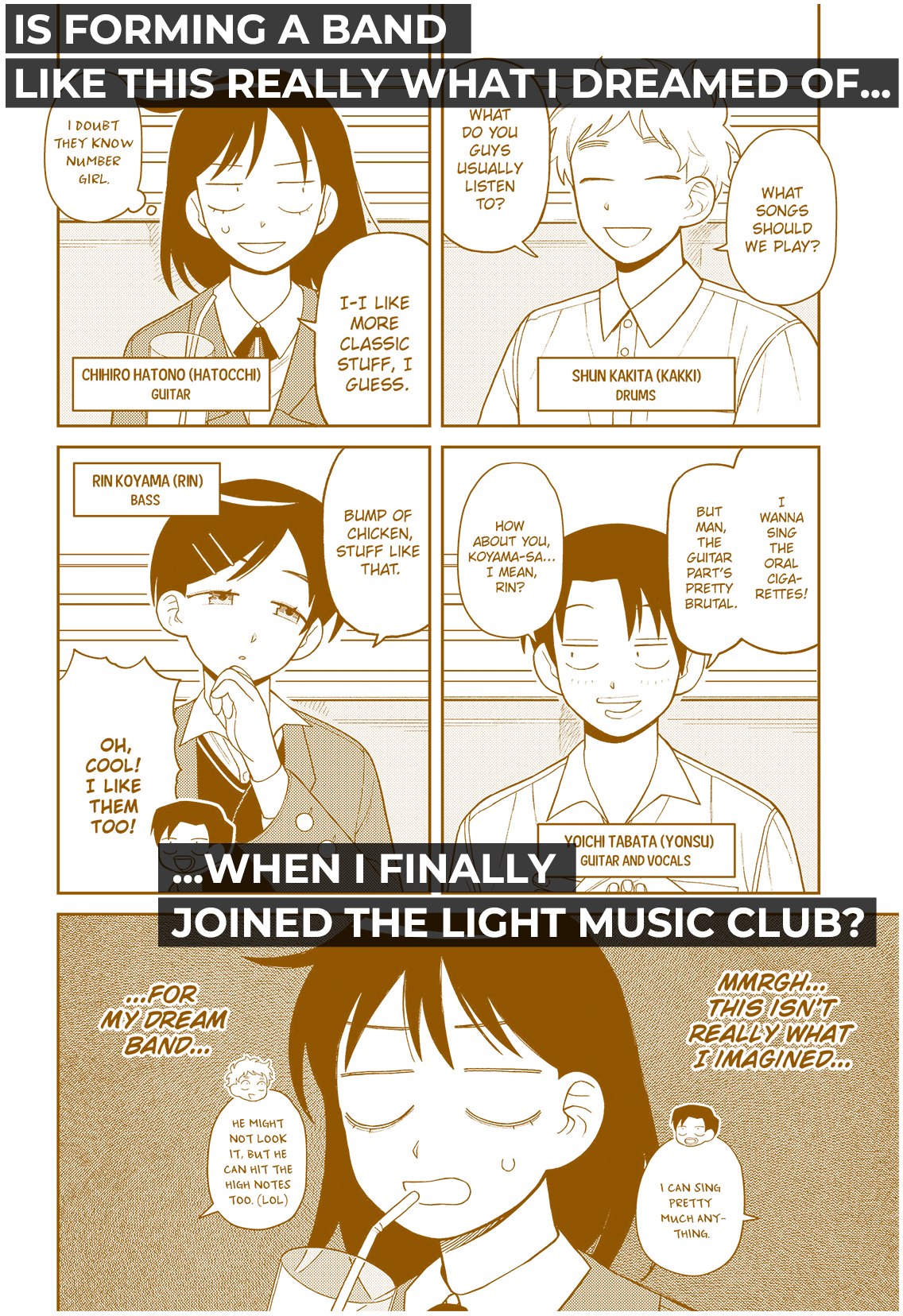 With a passion for richly textured Japanese rock, first-year high school student Chihiro Hatono steps into the world of the light music club, new guitar in tow. But what awaits her behind those doors...? A drama of unfiltered youth and musical ambition takes the stage!