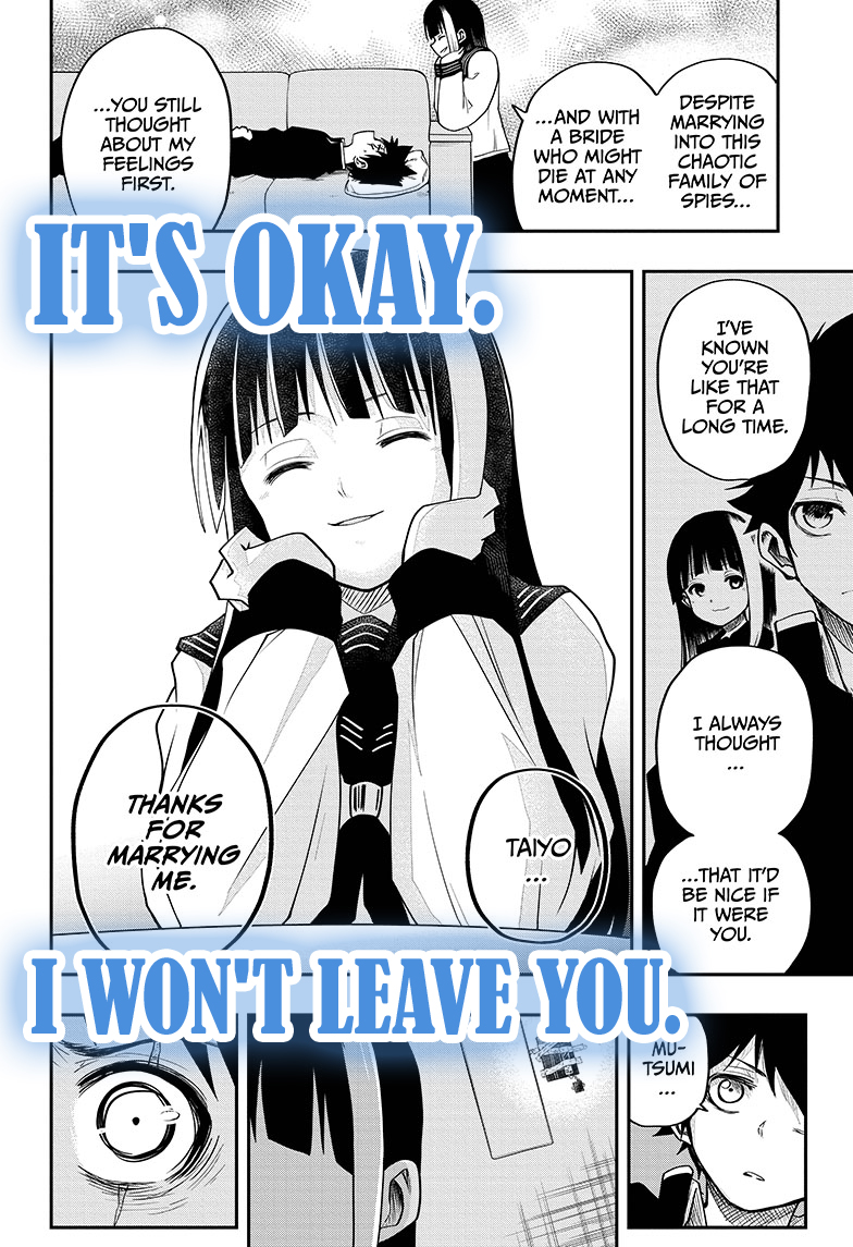Taiyo Asano is a super shy high school student and the only person he can talk to is his childhood friend, Mutsumi Yozakura. It turns out that Mutsumi is the daughter of the ultimate spy family! Even worse, Mutsumi is being harassed by her overprotective, nightmare of a brother, Kyoichiro. What drastic steps will Taiyo have to take to save Mutsumi?! A spy family comedy - the mission begins!