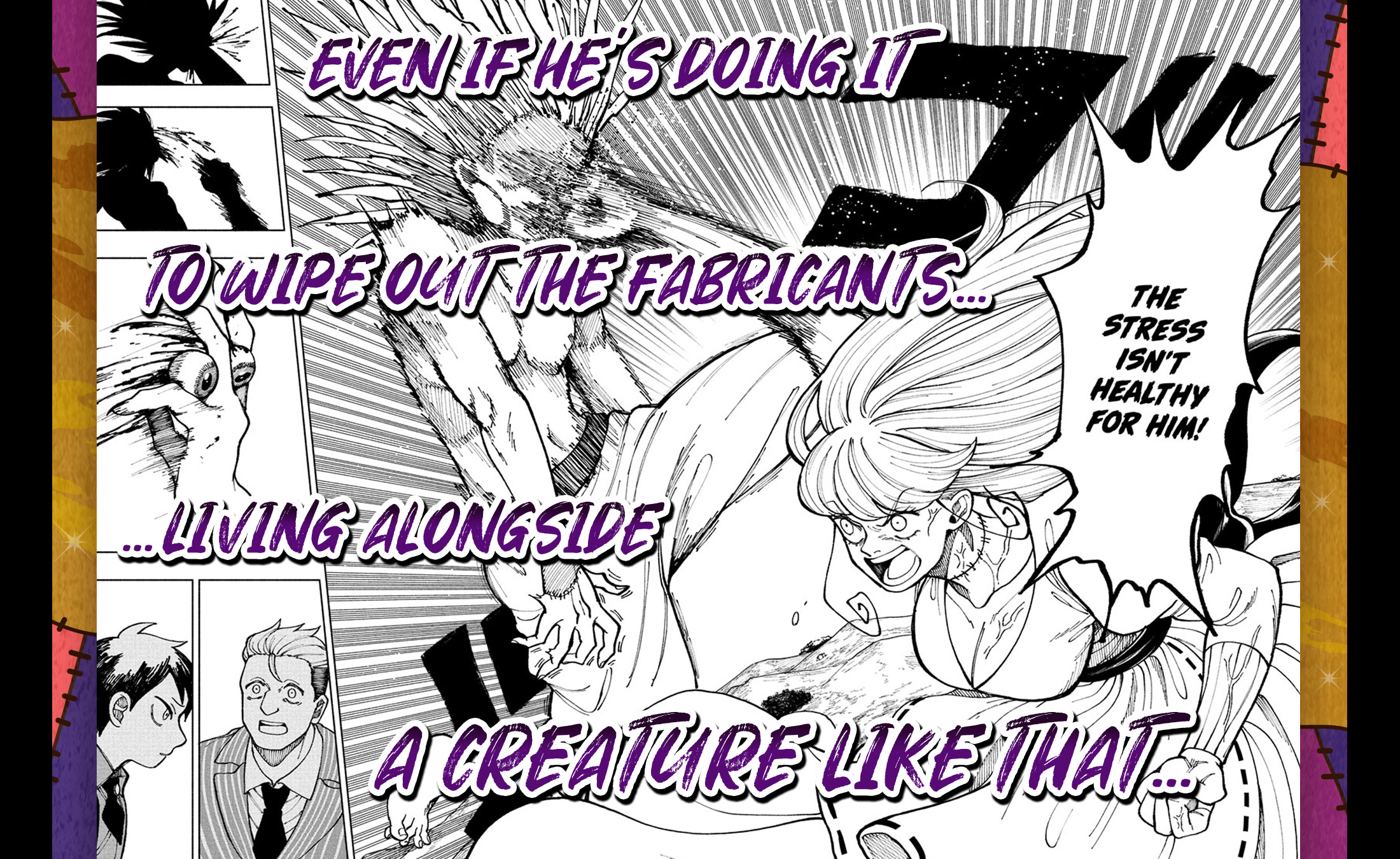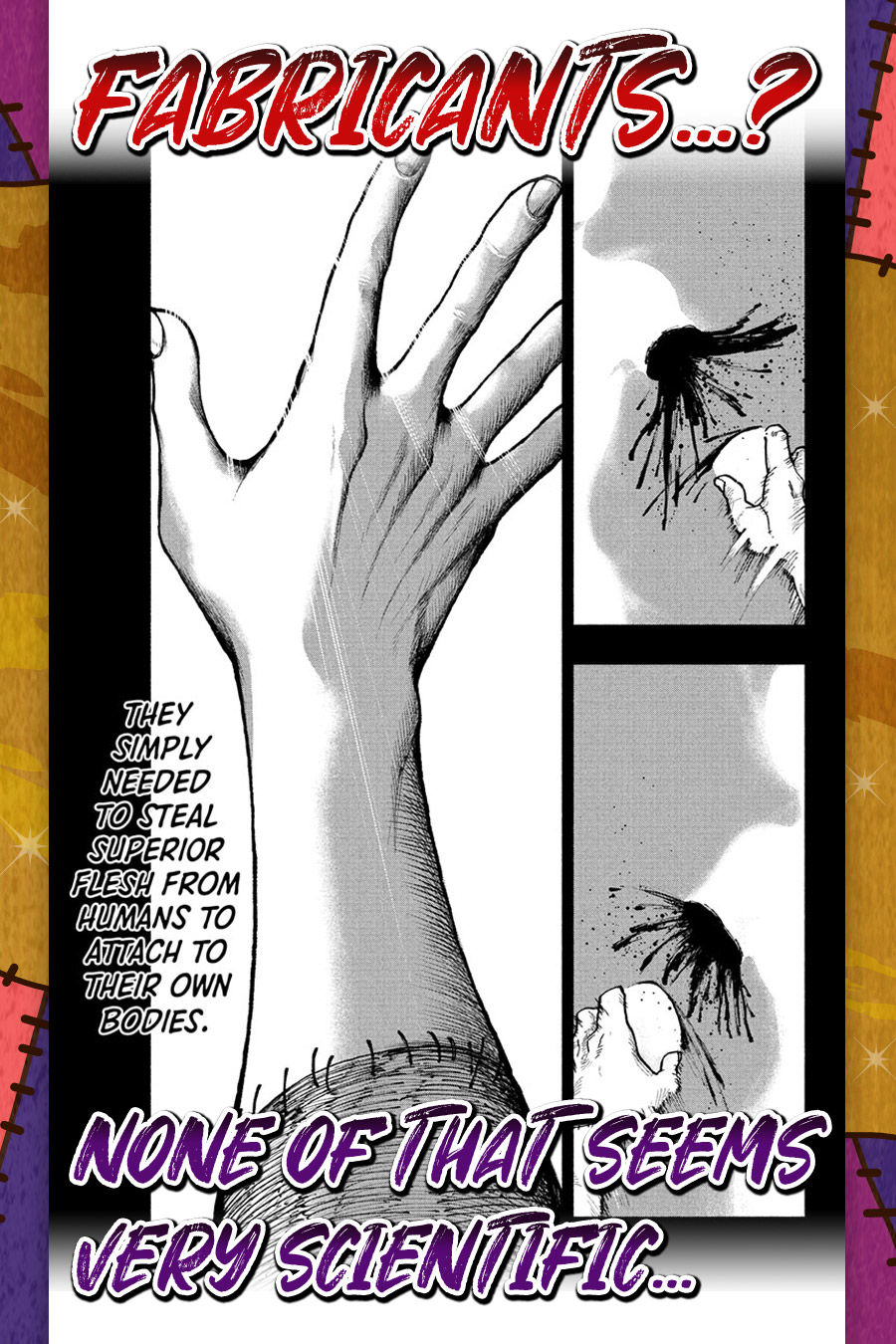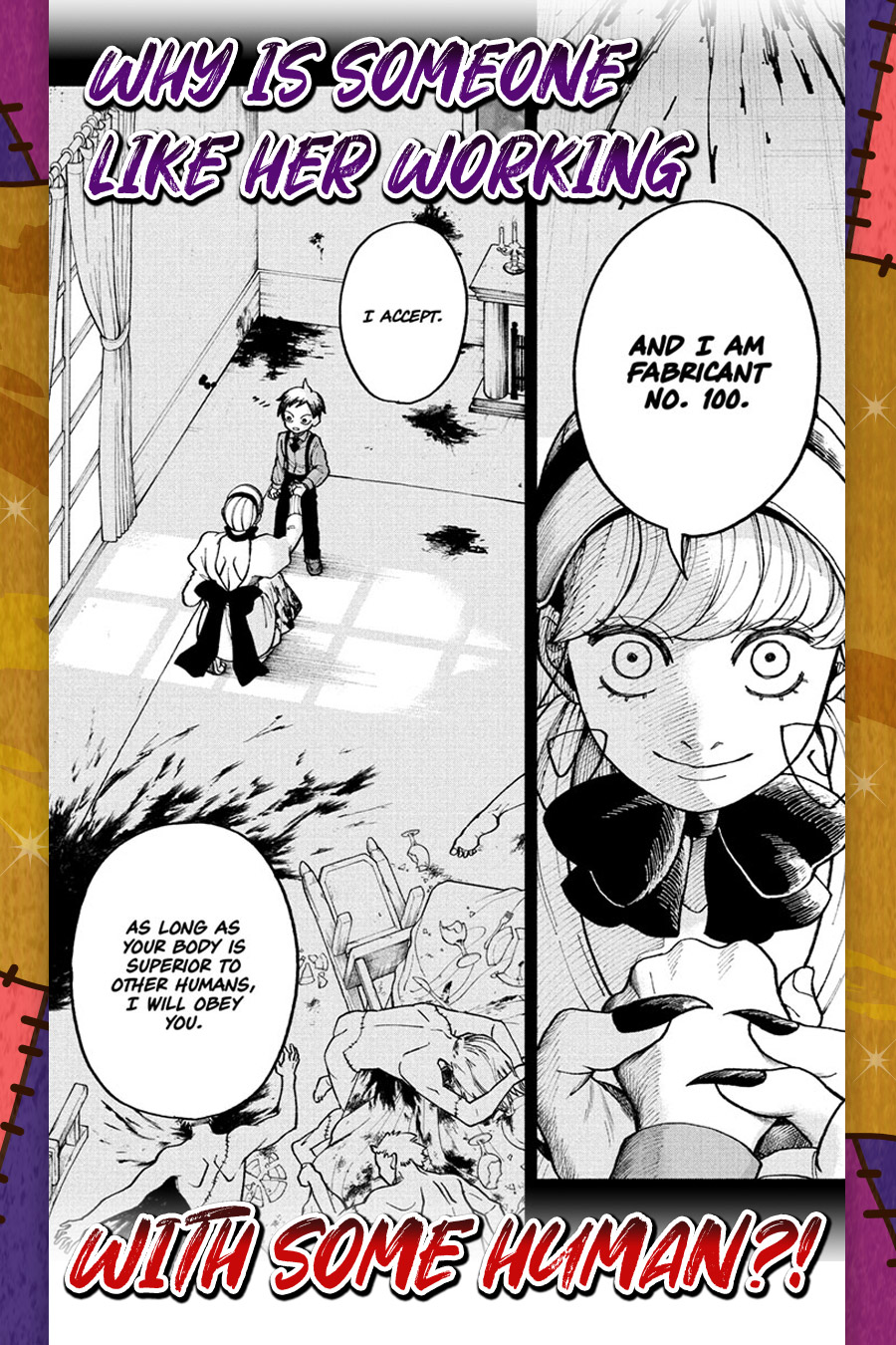 There was once a doctor fixated on creating the "ideal human being." After the doctor's death, his fabricant creations start attacking humans in order to attain the perfect body. When Ashibi Yao's entire family is murdered by these fabricants, he sets out on a journey of revenge accompanied by the doctor's final creation, Fabricant 100. This dark fairy tale launches only in the pages of Shonen Jump!